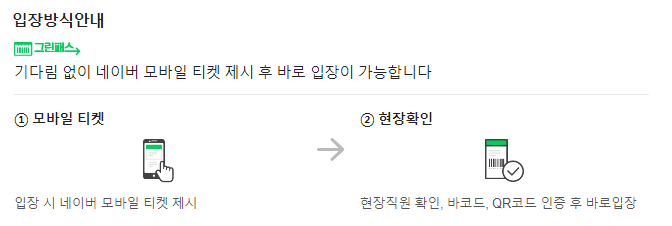 - 현장 매표소에서 모바일입장권 MMS 제시 후 입장하십시오.
