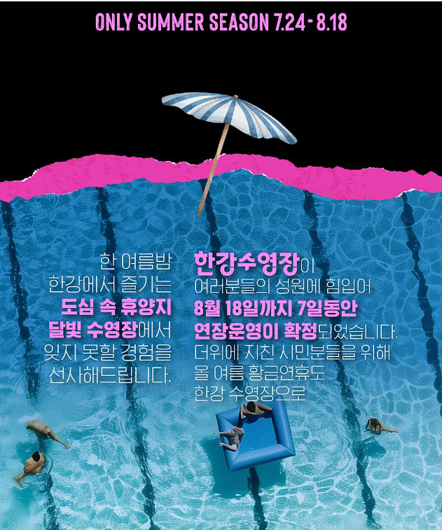 아래 정리된 정보를 통해 한강 수영장의 야간권을 쉽고 빠르게 예매하고, 여름밤의 특별한 물놀이를 즐겨보세요!